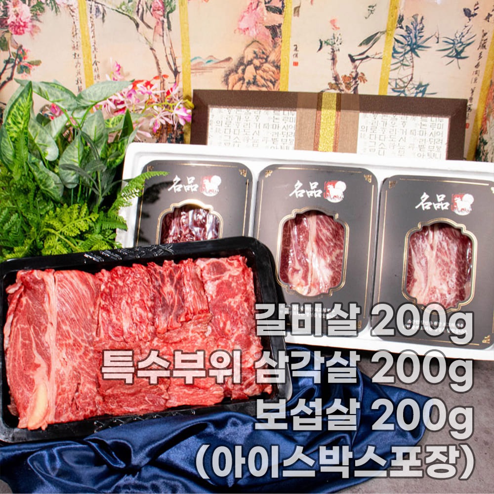 [설 선물 4만원 대] 한우 1++ 갈비살 200g+특수부위 삼각살 200g+보섭살 200g (아이스박스포장)