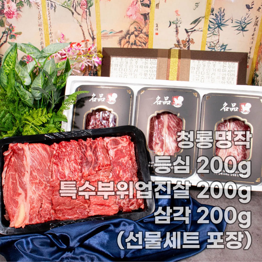 [설 선물 5만원 대] 한우 1++ 청룡명작 등심 200g+특수부위 업진살 200g+삼각 200g(선물세트포장)
