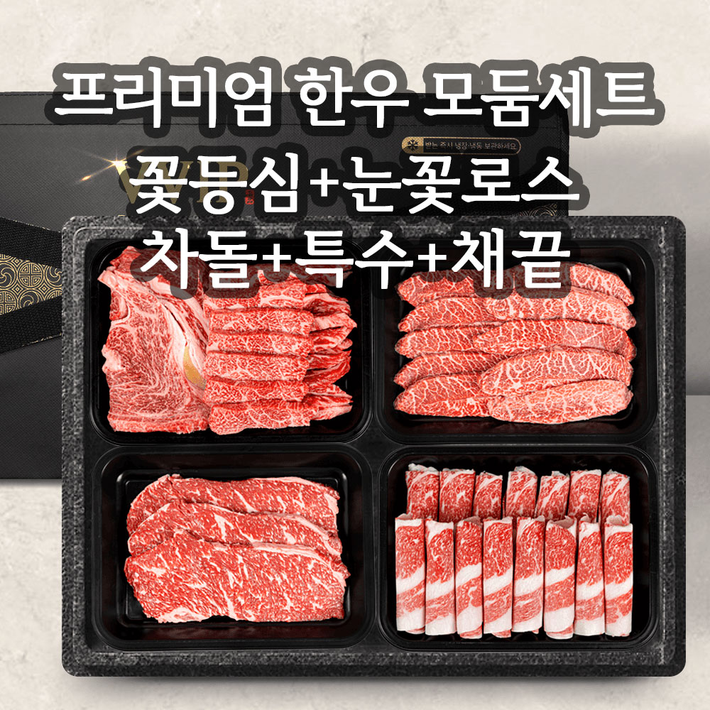 [설 선물 10만원~] 1++ 프리미엄 한우 모둠세트(꽃등심150g+눈꽃로스150g+차돌250g+특수200g+채끝200g)
