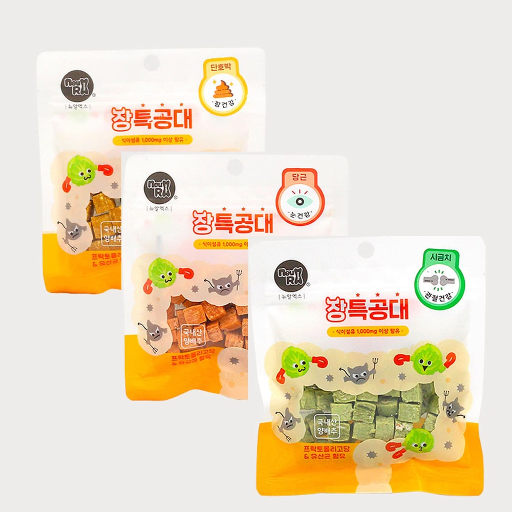 [144개 한정수량] 가수분해 닭가슴살+양배추 장특공대 3종 100g 유산균간식