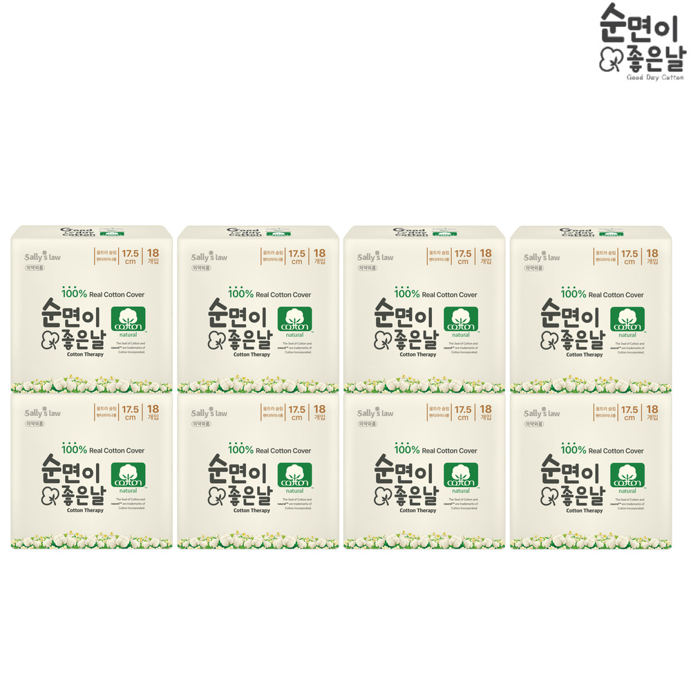 [무료배송/적립금 949P] 샐리의 법칙 순면이좋은날 롱팬티라이너 18PX8팩