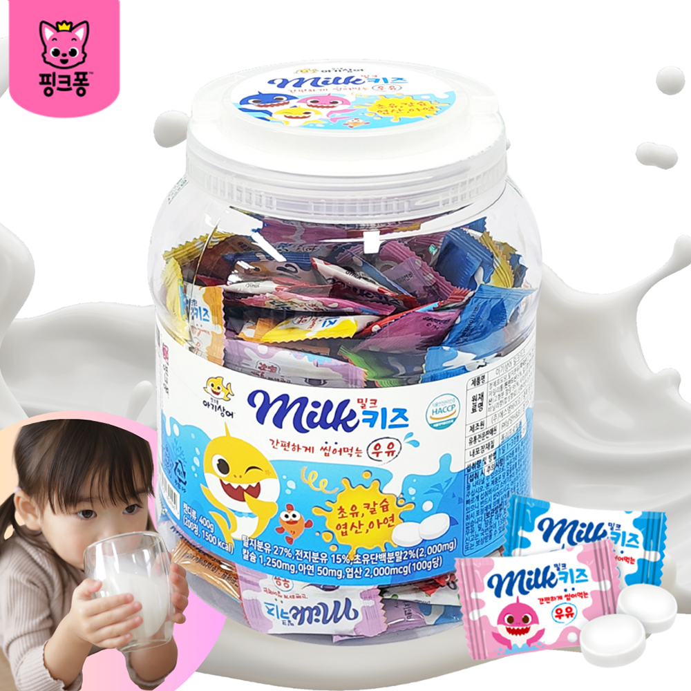 핑크퐁 아기상어 밀크 키즈 간편하게 씹어먹는 우유 1봉(20정) x 5개