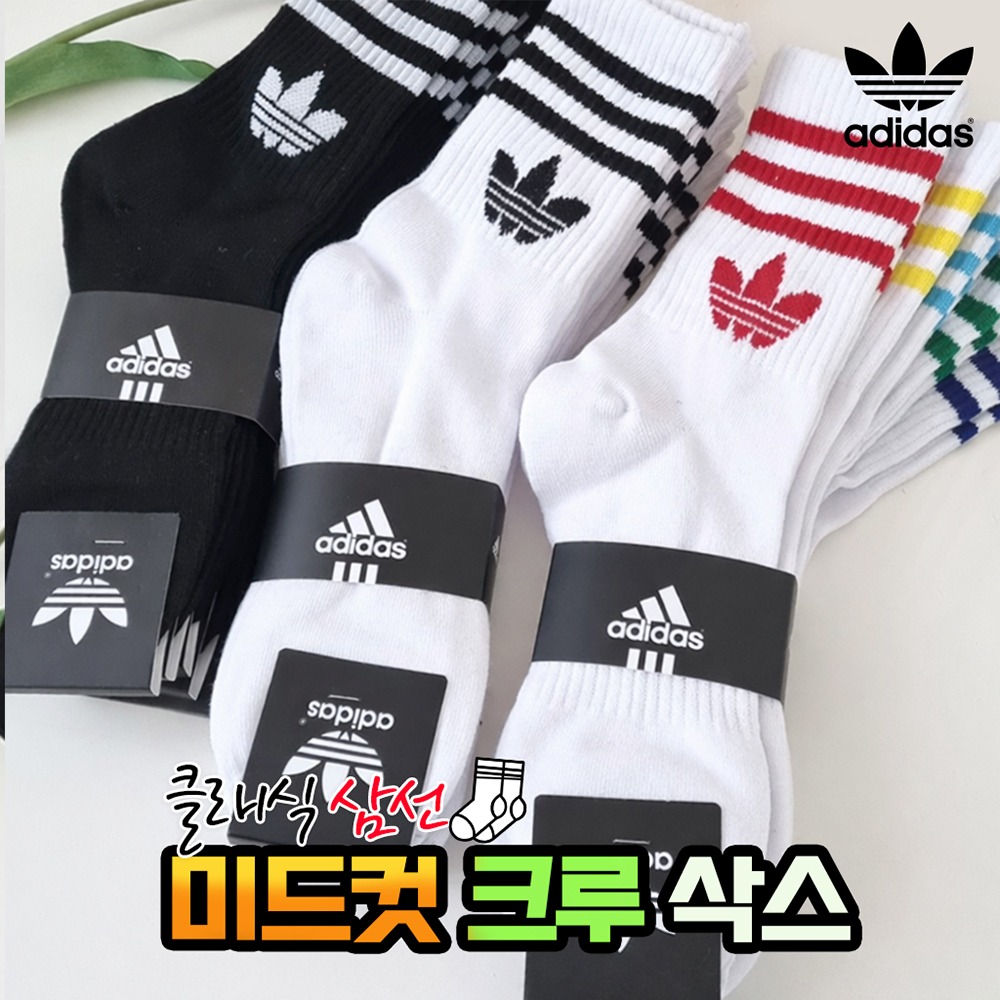[아디다스] 미드컷 크루삭스 중목 양말 5켤레 (1세트)