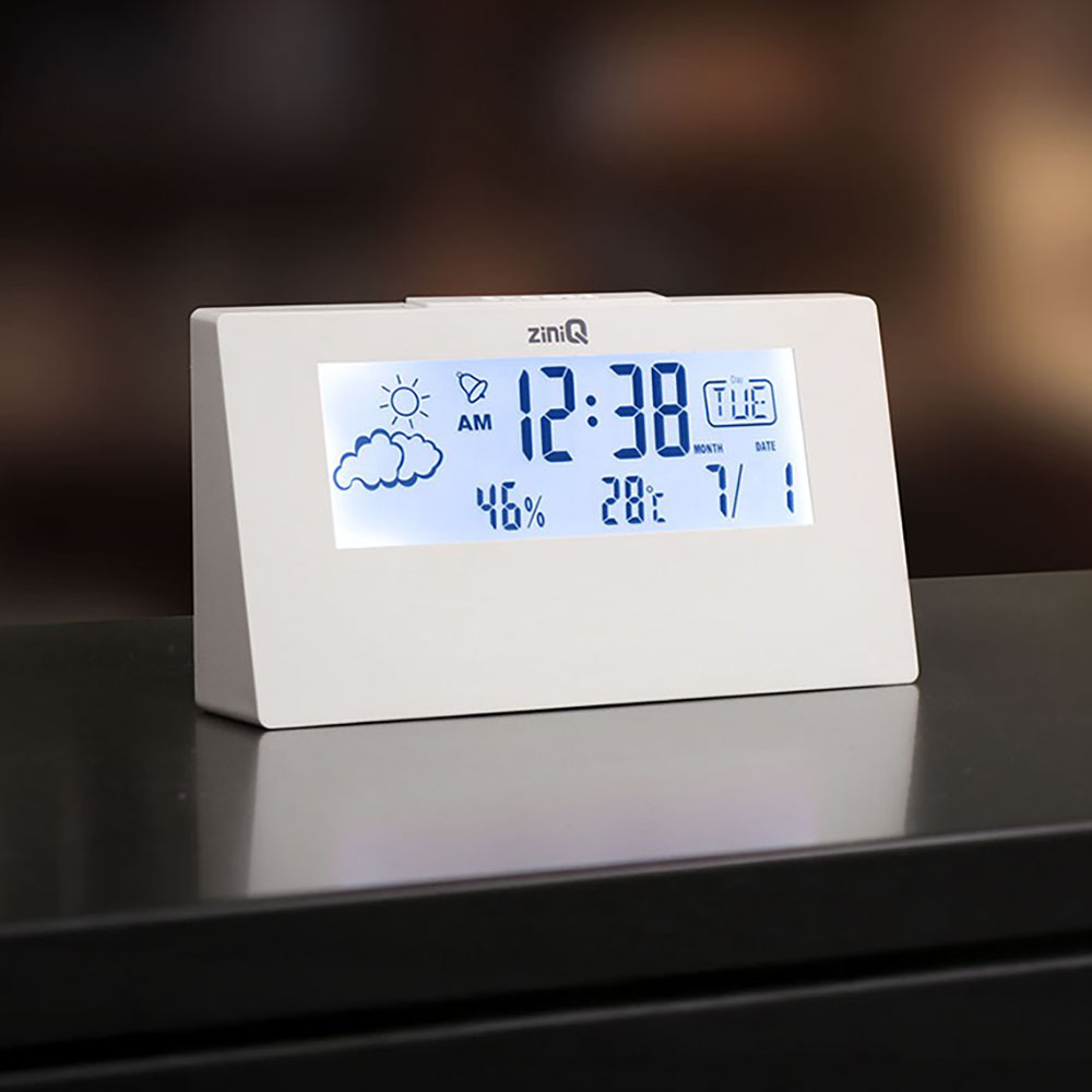 [지니큐] 디지털 LED 탁상시계 온도습도날짜표시 알람 투명탁상용 ZQ-CK300