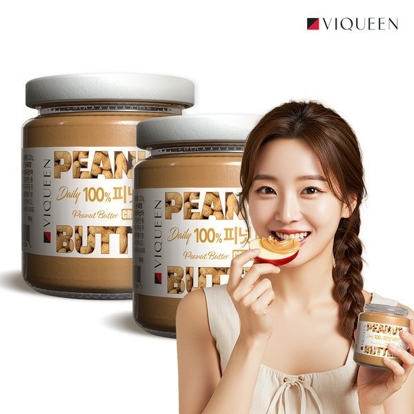 바이퀸 데일리 100% 땅콩버터 220g 피넛버터 크런치 무첨가 X 2개