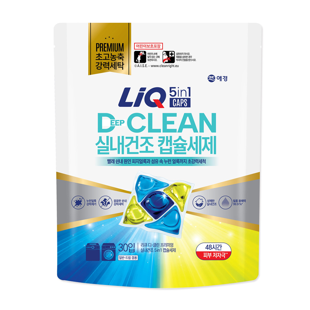 애경 리큐 디클린 실내건조 5in1 캡슐세제 30개입 (드럼,일반 겸용)