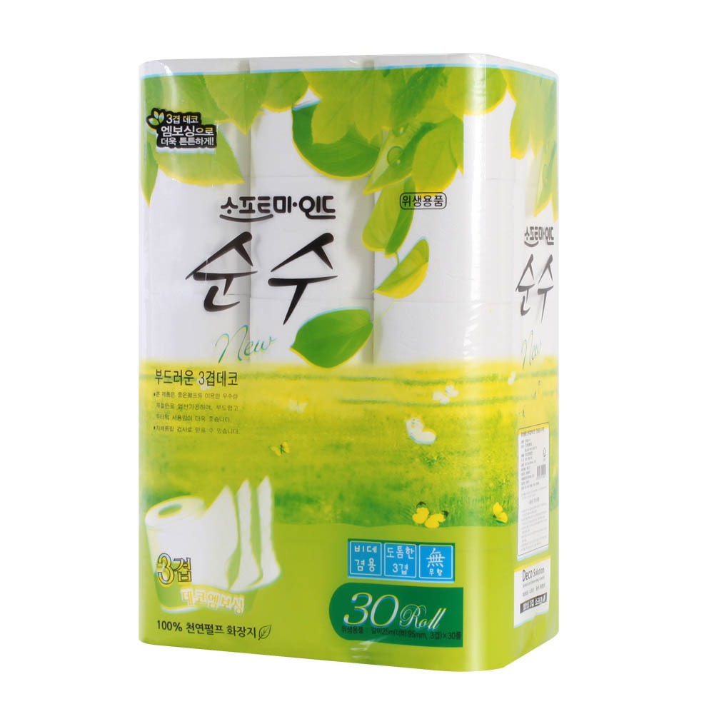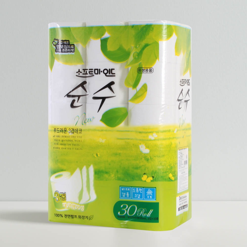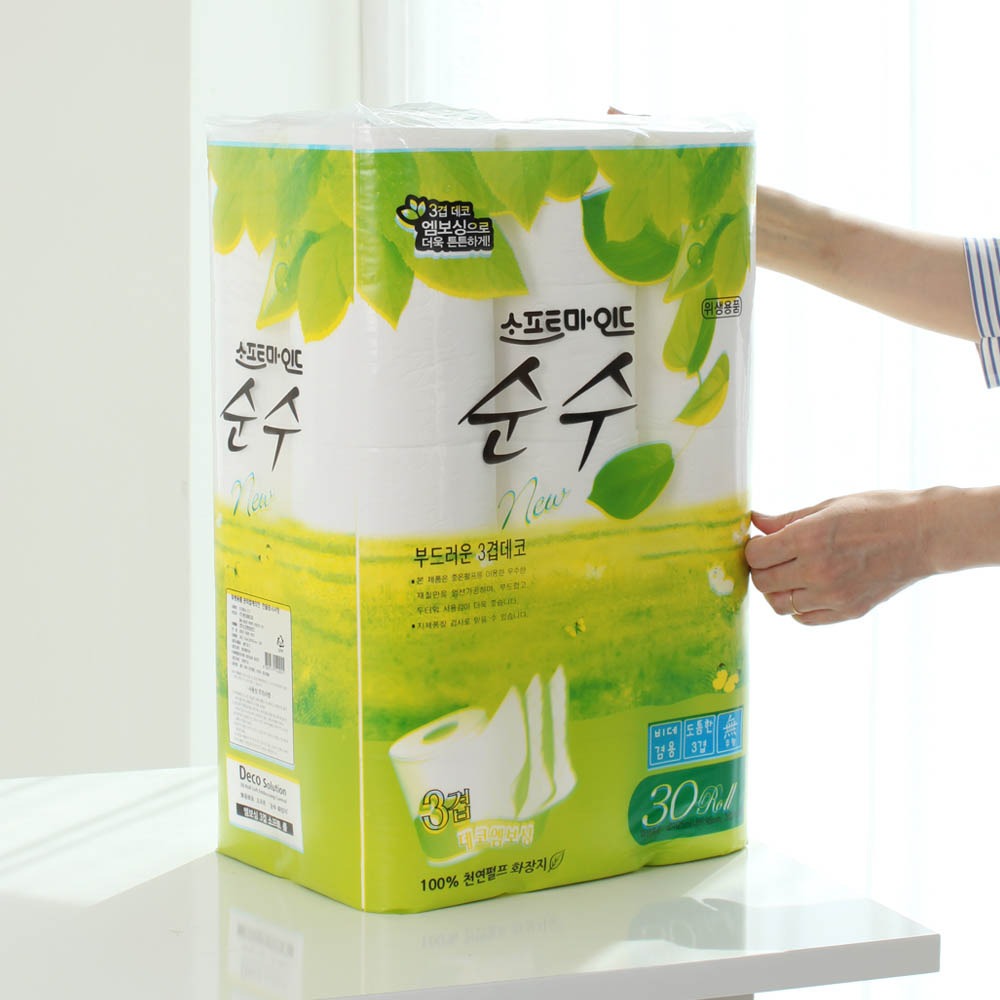 메인으로 [적립금 1,366P] 우리동네 순수 3겹 엠보싱 롤 화장지 비데겸용 천연펄프 100% (25m x 30롤) >